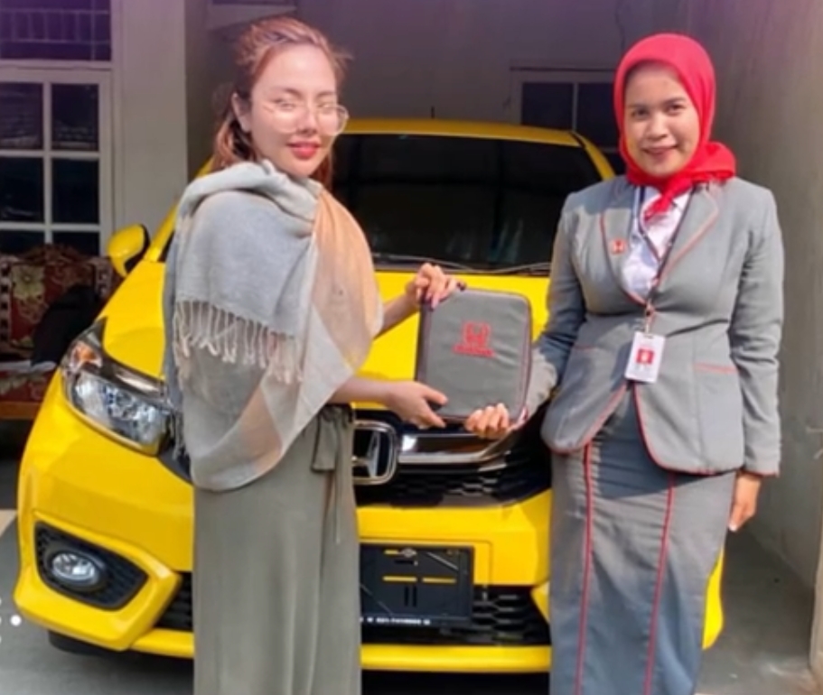 Netizen sebut mobil LC, usai viral Lisa Mariana sedang bersama unit Honda Brio warna kuning yang dibelinya di Sales Honda Pondok Cabe.-Sales Honda Tangsel -